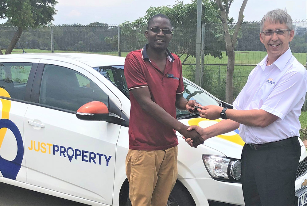 Willard Nyamagodo receives the company car from Brian van Wijk, principal of Just Property Midrand.