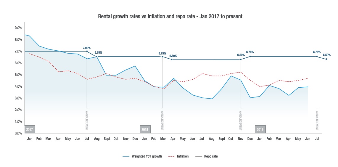 “From a rental market perspective, we’ve seen historically that there is not a strong correlation between the repo rate (and by extension the prime lending rate) and rental growth rates. Rather, rental growth is stimulated by other economic factors like supply and demand and affordability”, Davel explains.