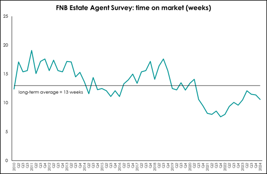 “According to FNB’s estate agency survey, increased housing market activity saw time on the market improve from 11 weeks and four days in Q4 2023 to 10 weeks and six days in Q1 2024, led by the Western Cape, where time on the market fell to seven weeks and one day, while Gauteng also registered an improvement”, shares Dr Andrew Golding, chief executive of Pam Golding Property Group.
