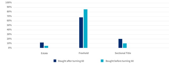 The majority of the 1.5-million non-retirement properties that are owned by the 60+-year-old’s (again excluding subsidised units), are freehold, followed by sectional schemes and then estates. “Interestingly, though, buyers who were 60 or older when they bought their retirement homes opted for Estates or Sectional Schemes in greater numbers, while those who bought when they were younger preferred Freehold properties, reflecting the overall pattern in the property market,” confirms Ivins-Downes.